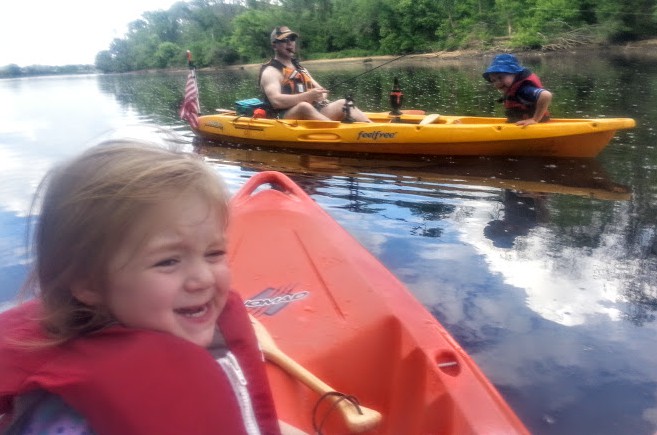 “Row, Row, Row Your Boat” lends itself to repetition, and also apparently, shouting at the top of your lungs to scare away all of the fish that Dad is trying to catch. We also enjoy “Michael Row Your Boat Ashore,” and “My Paddle’s Keen and Bright,” as well as non-boating-related songs.